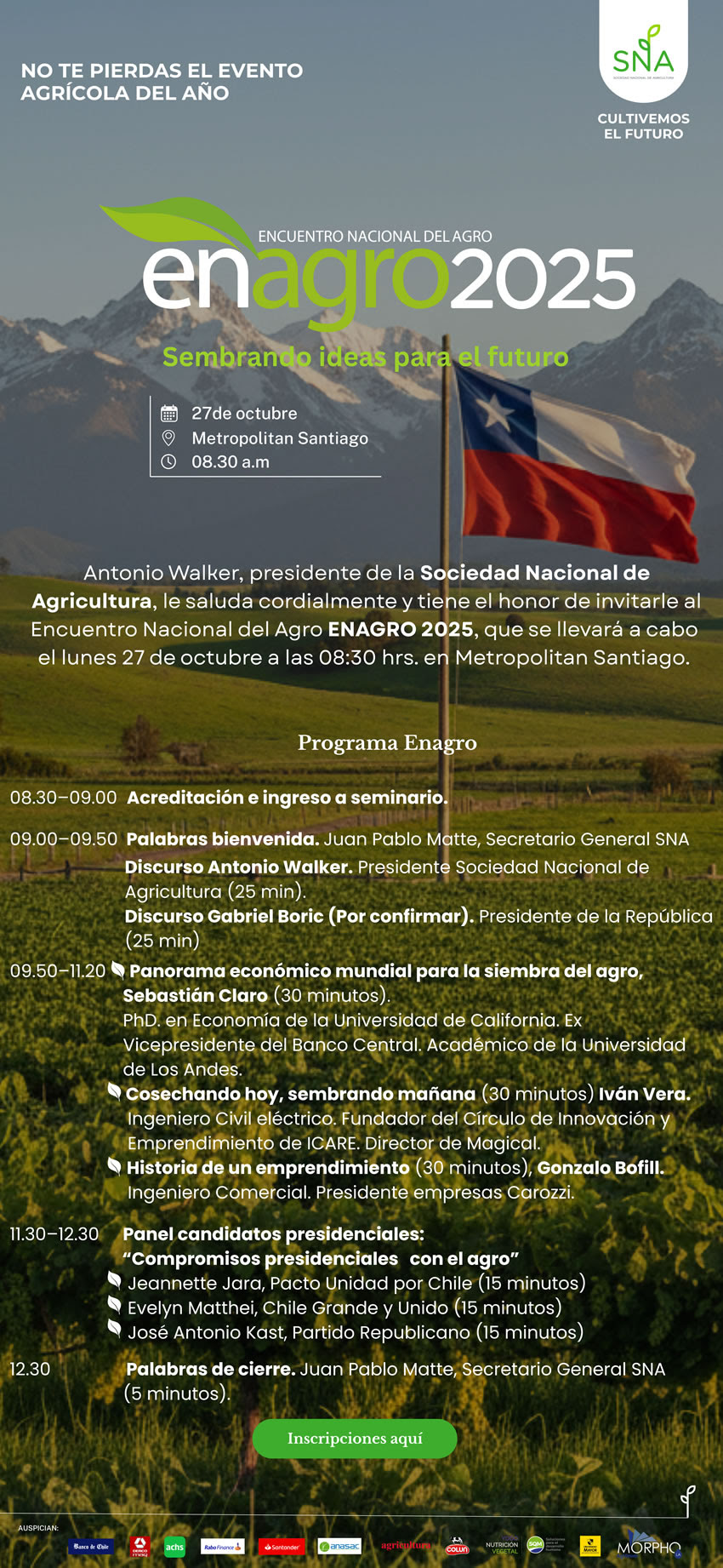 El pasado 27 de octubre, Morpho Latinoamérica participó en ENAGRO 2025, uno de los eventos más relevantes del agro chileno, organizado por la Sociedad Nacional de Agricultura (SNA), en el Metropolitan Santiago, comuna de Vitacura.